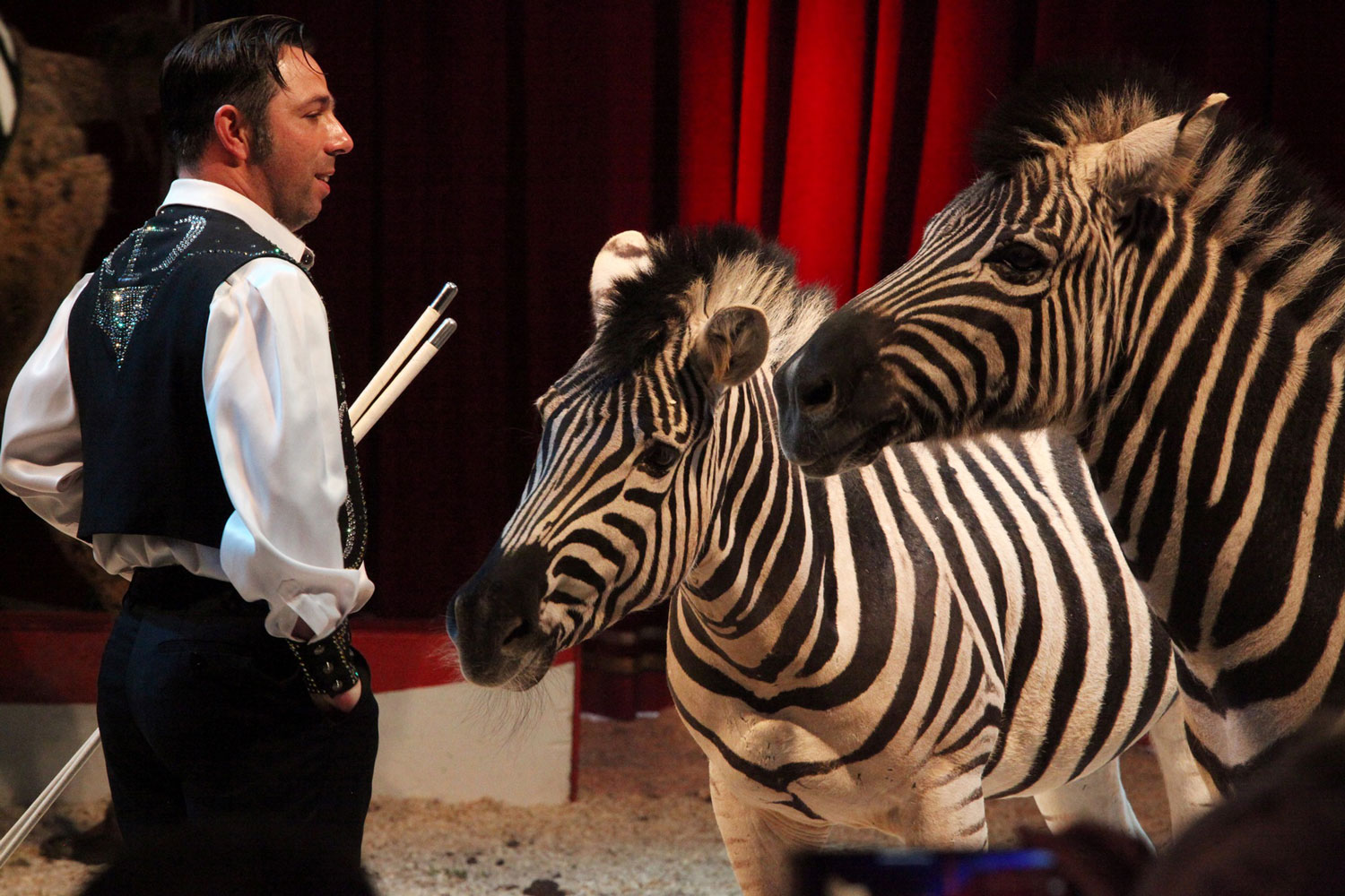 Elegante Zebras und exotische Kamele – kaum unterschiedlicher könnten die beiden Tierarten sein, die Andy Ortmann in seiner außergewöhnlichen Freiheitsdressur präsentiert. Tauchen Sie ein in diese faszinierende Darbietung, bei der die Anmut und Schönheit der Tiere im Mittelpunkt stehen!